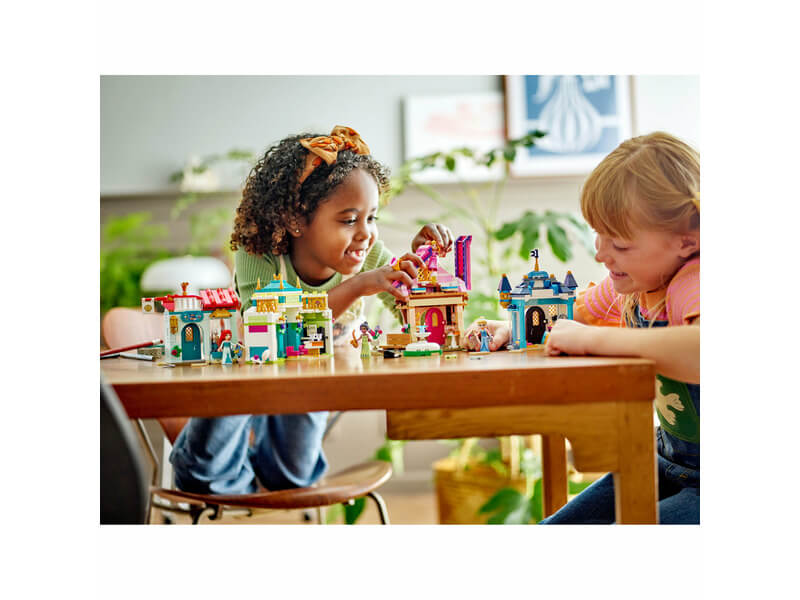 Lepd meg a rajongókat egy építőjátékkal, amely 4 épületet, 4 LEGO® Disney Princess minifigurát és 2 gyűjthető gyűrűt tartalmaz, amelyeknek cserélhető a díszítése.
