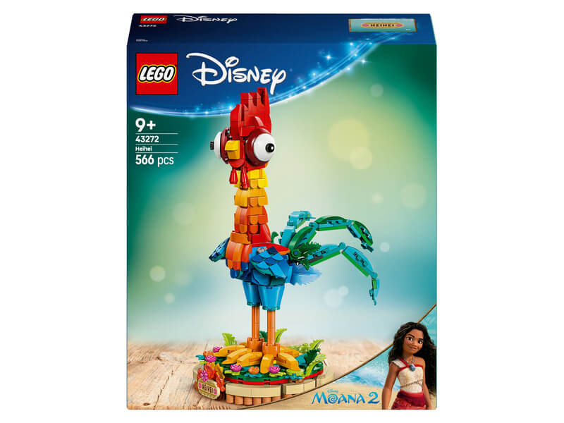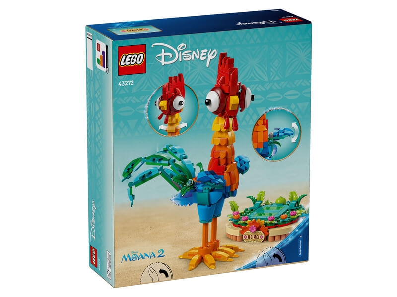 Keltsd életre a Vaiana és Vaiana 2. című Disney-filmek varázsát a beállítható Heihei (43272) LEGO® | Disney Vaiana 2. játék építőkészlettel! Az állatbarátok, a filmrajongók és a 9 éves vagy nagyobb gyerekek örömmel rakják majd össze a színes csirkebarát megépíthető modelljét, akinek forgatható feje, valamint beállítható szárnya, farka és tollazata van. A figura megáll a lábán, de állványon is ki lehet állítani a díszes virágokkal és a névtáblával együtt.