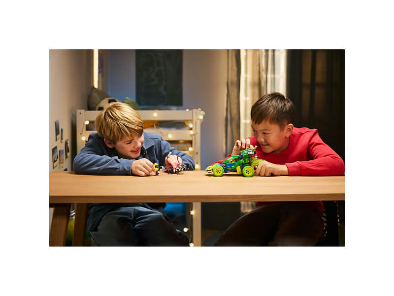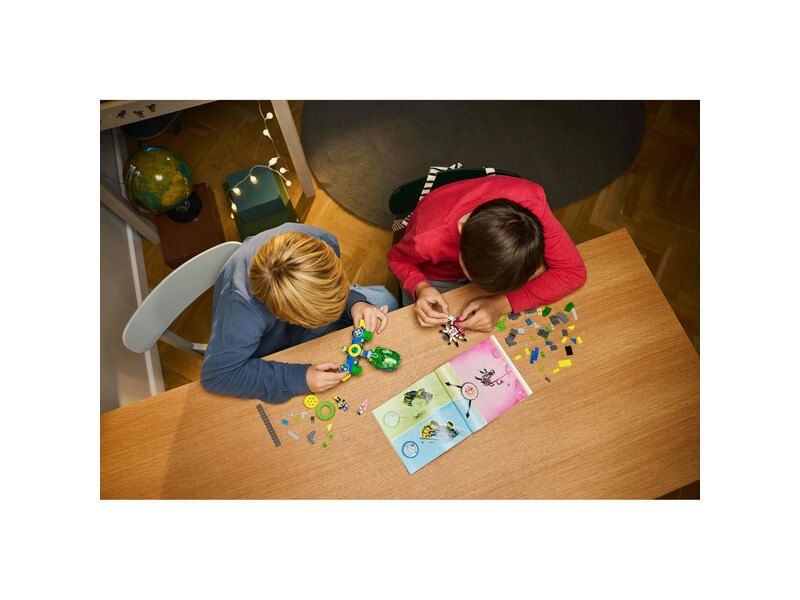 Kukkants be az álomvilágba a 8 éves vagy nagyobb fiúknak és lányoknak készült LEGO® DreamZzz™ Mateo és Z-Blob versenyautója (71491) építőszettel! Ezzel a sorozat ihlette, járműves szettel a gyerekek segíthetnek Mateónak és Z-Blobnak megmenteni egy virtuális álomlakót a kiberagyú póktól! A 2 építési móddal az ifjú álmodók örömmel rakják majd össze a fő modellt, mielőtt egy játék versenyterepjárót vagy egy szupergyors, játék motorkerékpárt építenének belőle. A szuper részletek közt találod a levehető szélvédőt, a forgó kerekeket és a 2 db, hatos korongvetőt, de olyan levehető modulok is várnak, amelyeket a 2025-ös LEGO DREAMZzz választék más szettjeihez építhetsz majd hozzá. Az akciót a főhős, Mateo és a gonosz D-Shock keltik életre, de Z-Blob, a kiberagyú pók és a virtuális álomlakó is fantáziadús játékra hív!