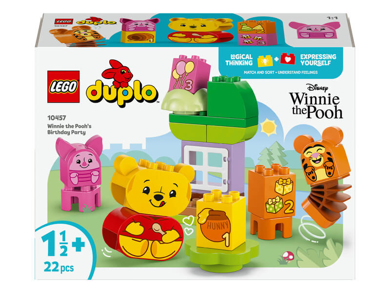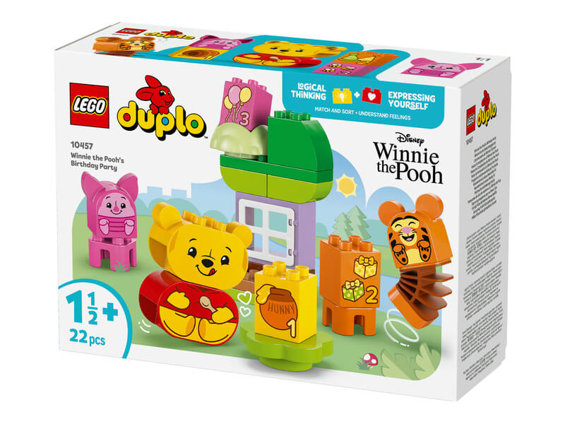 Az óvodások elképzelhetik, hogy elmennek a zsúrra 3 LEGO DUPLO figurával: Micimackóval, Tigrissel és Malackával. Mindegyik szereplő arcának két oldala van, amelyeken különböző arckifejezések inspirálják a korlátlan, kreatív játékot és történetmesélést. Ez a szórakoztató funkció lehetőséget nyújt a szociális-érzelmi fejlődést támogató tevékenységekre is, hiszen a kicsik eljátszhatják, milyen érzelmek kerülhetnek elő a zsúrokon, az ajándékbontás örömétől egészen a sütievésből eredő túlzott jóllakottságig.