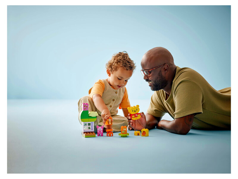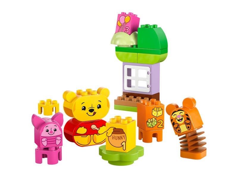 - Egy vidám fejlesztő- és építőjáték – A kisgyermekek örömmel játsszák el az ünneplést, és fejlesztik kisgyermekkori készségeiket a LEGO® DUPLO® | Disney Micimackó születésnapi zsúrja építőszettel