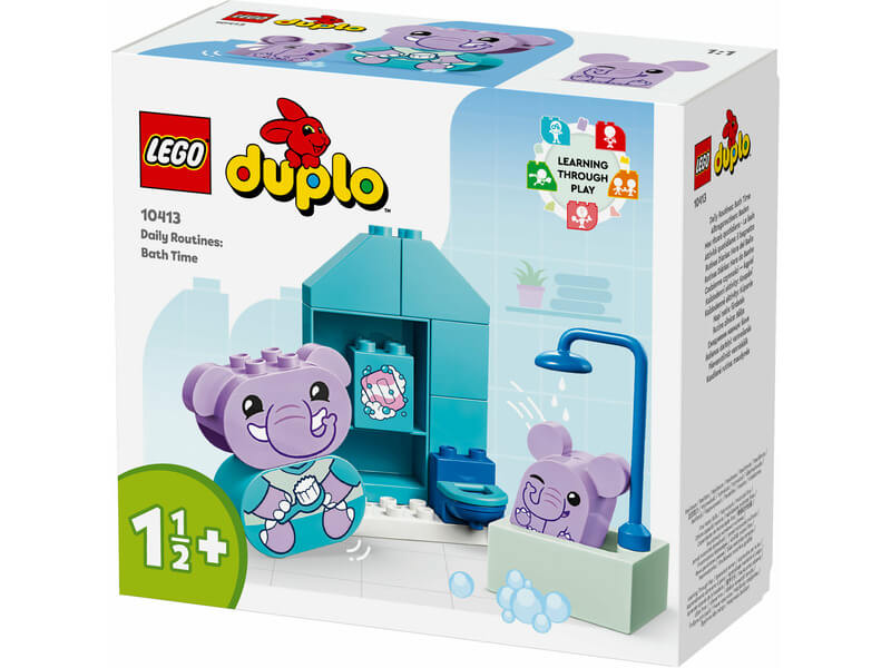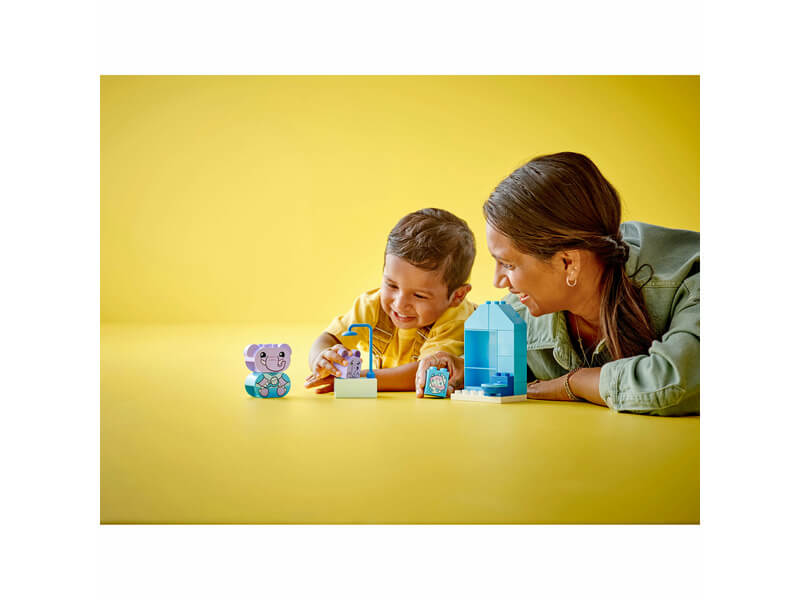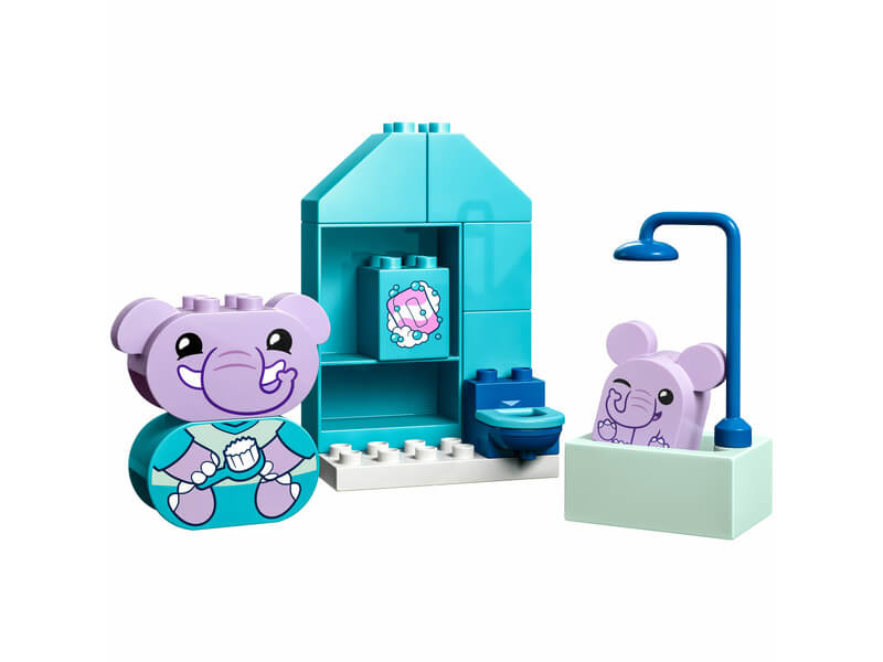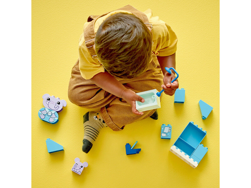 LEGO® DUPLO® Napi rutin: Fürdetés állatos szett kicsiknek, amely a higiéniára tanítja a gyermekeket, miközben segítenek tisztálkodni a kiselefántnak.
