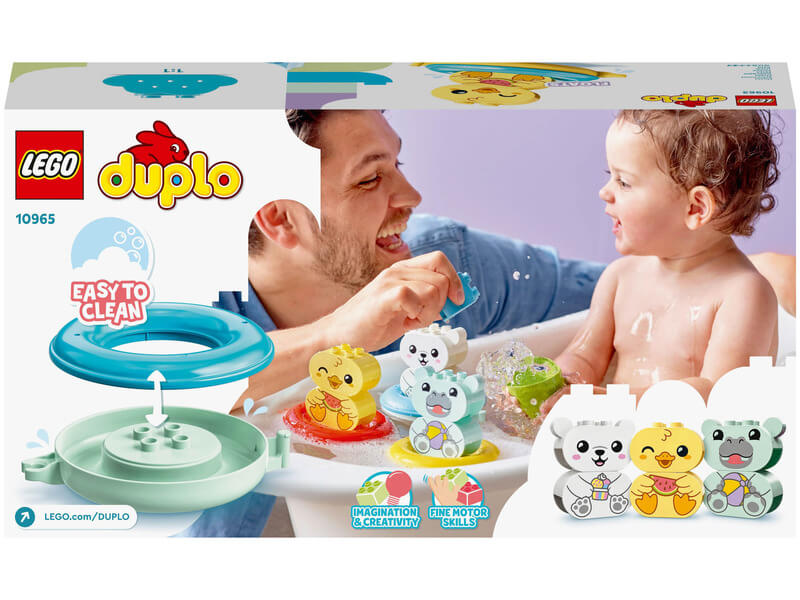 A LEGO® DUPLO® úszó állatos vonat (10965) szuper móka az esti fürdetéshez. Színes, fejlesztő játék a legkisebbeknek, ami könnyen szárítható, tisztítható használat után.