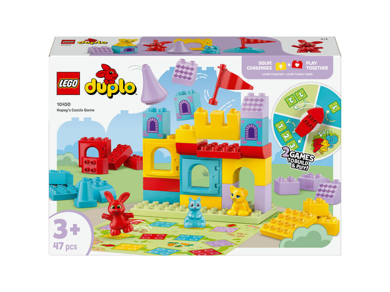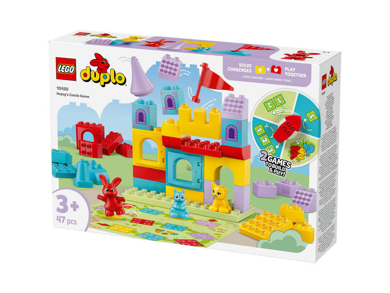 Te és a kisgyermeked órákon át élvezhetitek a családi vidámságot ezzel a 2 az 1-ben társasjátékkal, amely segíti a kicsiket, hogy a számokról, a színekről és arról tanuljanak, hogy a játékosok felváltva következnek. Az 1. játékban a kicsiknek meg kell építeniük a kastélyt Hoppszi és a barátai számára, mielőtt hazaérnek. A 2. játékban pedig színes kockákból kell összerakni a legmagasabb tornyot.