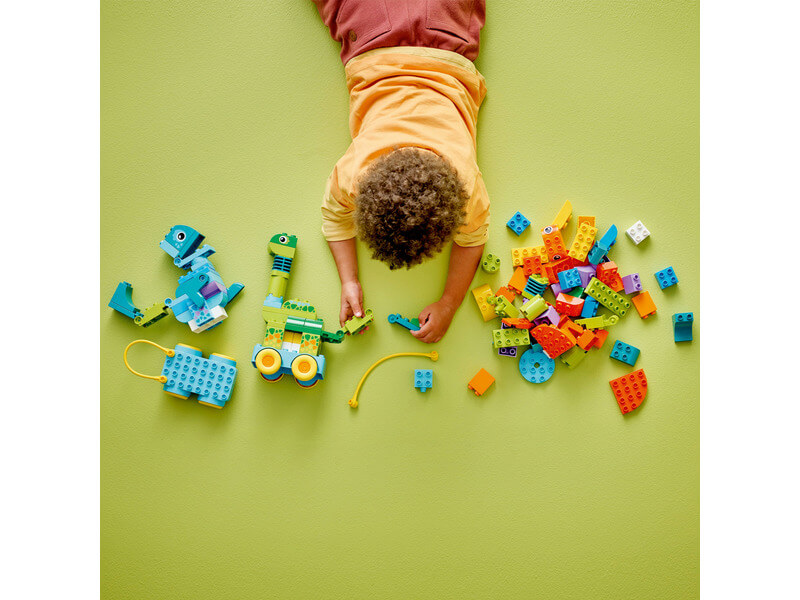 • Kisgyermekjáték az órákon át tartó, kreatív játékért – Csempéssz vibráló színeket és végtelen kreativitást az óvodások játékidejébe a LEGO® DUPLO® Városi kalandok 3 az 1-ben guruló dinók fejlesztőjátékkal!