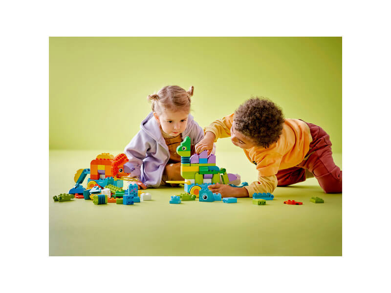 Ez a kisgyermekeknek szóló 3 az 1-ben LEGO DUPLO szett rengeteg lehetőséget tartogat a játékos tanulásra. A szetthez könnyen kezelhető blokkok tartoznak, amelyeket könnyű szétszedni, így fejleszti a kisgyermekek kitartását, koncentrációját és képzelőerejét, miközben vég nélkül építik meg és át a kreatív játék állatokat. 108 elemből áll.