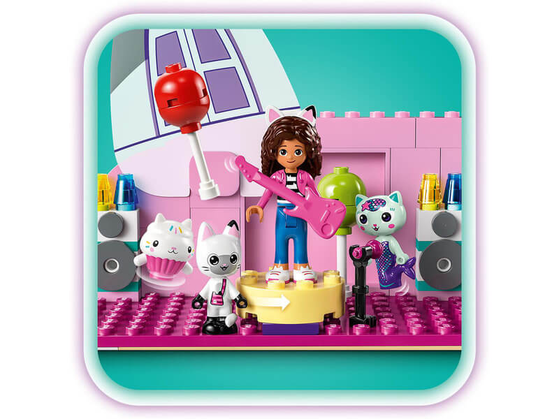 Gabi babaházában 8 színes szoba van, amelyeket egy lift köt össze. Minden szoba tele van különféle tevékenységgel. A gyerekek például süthetnek a konyhában, használhatják a csúszdát a játszószobában, kreatívkodhatnak a művészszobában, zongorázhatnak a zeneszobában, kényeztethetik magukat a fürdőszobában, szunyókálhatnak a hálószobában, vagy felmehetnek a padlásra egy bulira a forgatható táncparketten. A gyerekek megosztják kalandjaikat a sorozat 4 népszerű karakterével: Gabival, Pandi Pajtival, Sütivel és Szirénkével. Képes történetépítő útmutató segíti a gyermekeket, a LEGO Builder alkalmazás pedig intuitív nagyítási és forgatási eszközökkel rendelkezik. A nagy kezdő kocka biztosítja, hogy az építési móka azonnal elkezdődjön.