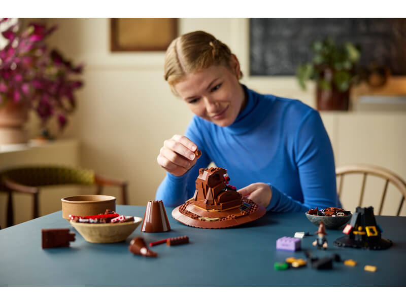 Építsd meg, állítsd ki, és játssz vele! – A LEGO® Harry Potter™ A beszélő Teszlek Süveg™ modell 24 cm magas és 19 cm az átmérője.