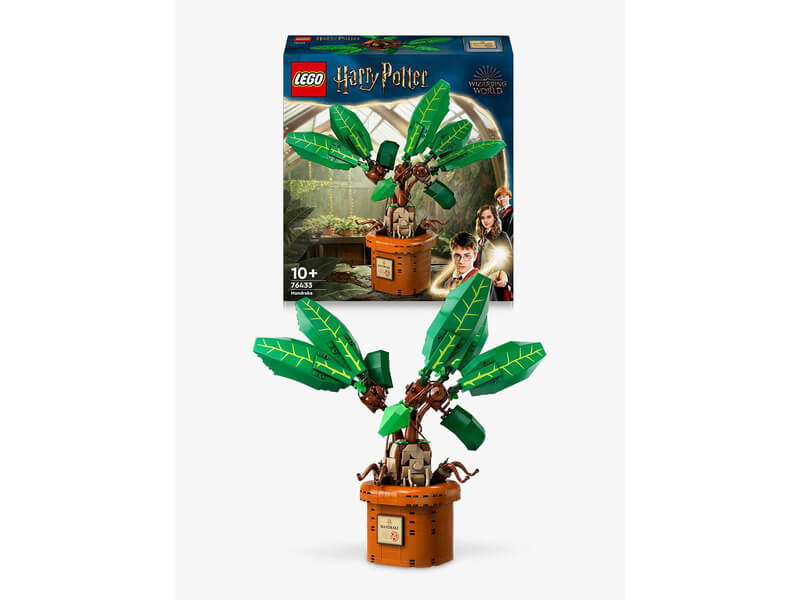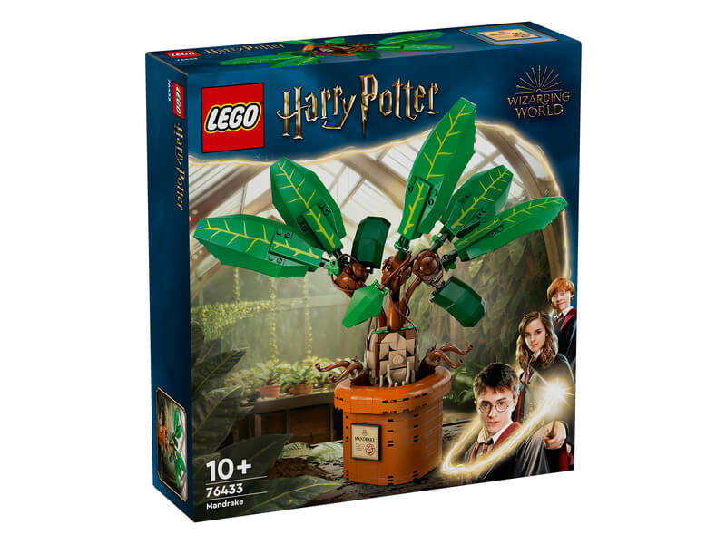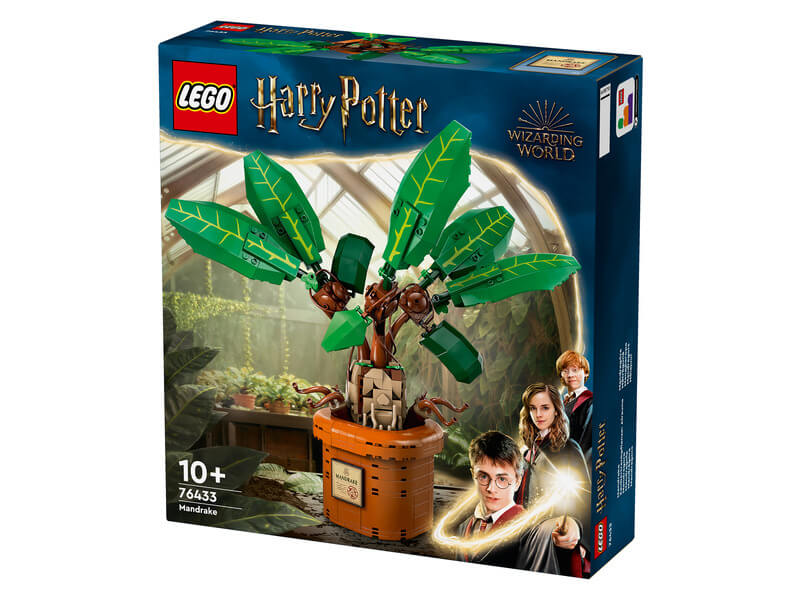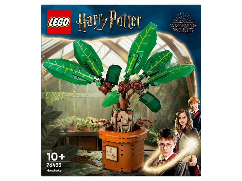 Készíts vidám kiállítási darabot a Roxfort™ gyógynövénytanórájáról ismert varázslatos mandragóra növény legelső LEGO® Harry Potter™ játékfigurájával. Gazdagítsd a gyerekek életét a Roxfort™ gyógynövénytanóra csodáival a LEGO® Harry Potter™ Mandragóra játék növény (76433) segítségével, amely a sikító növény első olyan figurája, amely LEGO kockákból épült! Varázslatos ajándék és lakásdekoráció a fantáziával teli lányoknak, fiúknak és 10 éves vagy annál nagyobb Harry Potter rajongóknak, hiszen a szett egy szinte életnagyságú, beállítható modelljét rejti a mandragórának, sőt, egy megépíthető cserép is a készlet része, hogy játékos kiállítási darabot lehessen készíteni. Állítsd be a mandragóra leveleit, vedd ki a cserépből, és mozgasd fel-le a mellkasát, hogy a szájával és a végtagjaival imitálja a sikítást! Tedd még izgalmasabbá a kreatív élményt a gyermekek számára a LEGO Builder appal, amellyel az építők építés közben felnagyíthatják és megforgathatják a modellek 3D-s változatát, nyomon követhetik a haladásukat és készleteket menthetnek el. Lenyűgöző lakásdekorációs ötlet, hiszen ez a szokatlan játék varázslény része a LEGO Harry Potter készletek gazdag gyűjteményének (külön kaphatók), amely végtelen sok lehetőséget kínál arra, hogy varázslatos történeteket építs meg és játssz el! Harry Potter™ dekorációs ötlet – Az 579 elemből álló szettben a cserépbe helyezett Mandragóra játékfigura 27 cm magas.