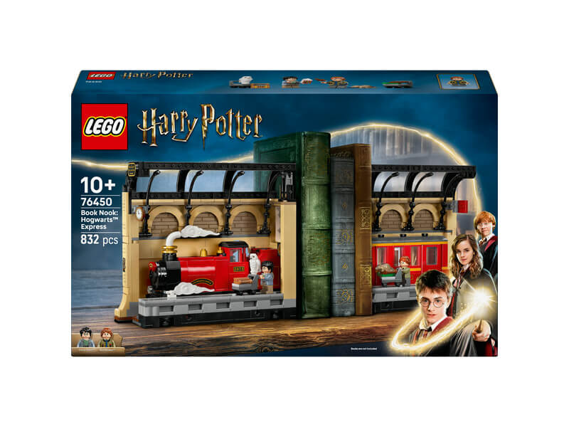 Csempéssz egy kis varázslatot a gyerekek könyvespolcára a legelső LEGO® Harry Potter™ könyvkuckóval (76450), amely a Roxfort™ expressz egyik megépíthető részletét jeleníti meg – így kreatív dekorációt készíthetsz a könyvespolcra. Ezzel a varázslatos játékkal, a Harry Potter és Ron Weasley™ minifigurákkal, valamint kisállataikkal, Hedwig™-gel és Makesszel a gyerekek újra átélhetik a King’s Cross pályaudvar 93. vágányánál játszódó jeleneteket. A vonatmodell egy részletgazdag mozdonyból és kocsiból áll, amelynek oldalsó nyílásain át szállhatnak be a minifigurák. A kocsi egyik végén van egy tükör, hogy hosszabbnak tűnjön a vonat.