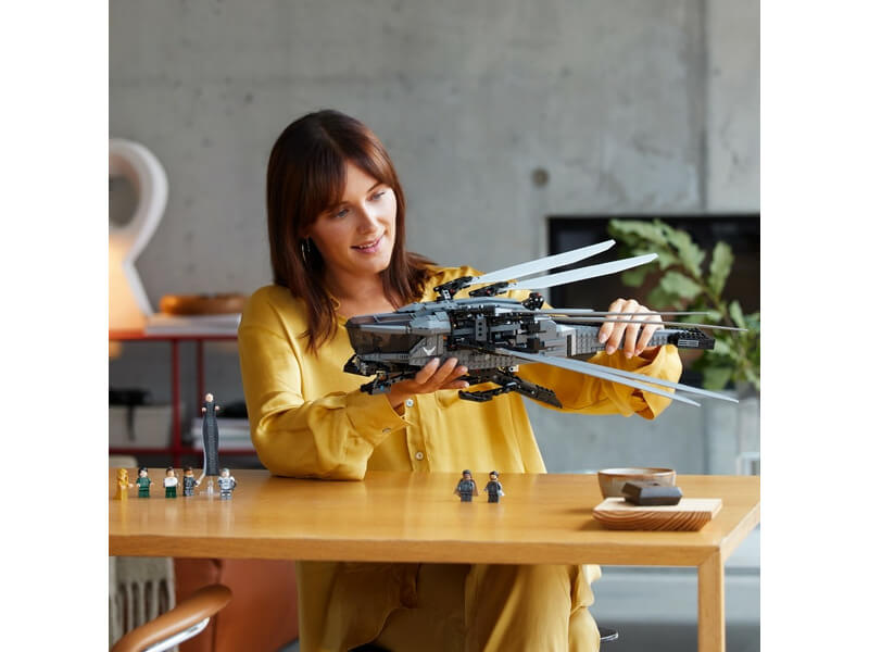 Íme egy lenyűgöző filmes ajándék ötlet a Dűnecímű film rajongóinak: a LEGO® Icons Dűne: Atreides Royal Ornithopter (10327) felnőtteknek készült építőszett. Lepd meg a kedvenc filmrajongódat, vagy tölts te magad minőségi időt azzal, hogy megépíted a legendás House Atreides repülő modellverzióját! A kiváló minőségű másolat szárnyai kihajthatók és kitárhatók, futóművei kiengedhetők, a pilótafülkéje pedig felnyitható. A készlet a film 8 ikonikus szereplőjét is tartalmazza: Paul Atreides, Lady Jessica, Gurney Halleck, Chani, Leto Atreides, Liet Kynes, Duncan Idaho és Baron Harkonnen a hosszú köpenyében. Fedezz fel egy új helyet a kikapcsolódásra a kifejezetten felnőttek számára készült LEGO építőkészletek inspiráló választékával! A szetthez tartozó építési útmutatót megtalálod a LEGO Builder appban is.