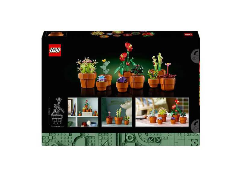 Készíts egy törődést nem igénylő növénydekorációt ezzel a felnőtteknek szóló lakásdekorációs építőszettel! A LEGO® Icons Apró cserepes növények (10329) építőprojekt szárazságtűrő, trópusi és húsevő növényfajok alapján készült, amelyek mindegyike cserépszínű növénytartóban pihen. Élvezd a kikapcsolódást a 9 növény megépítése közben, majd állítsd ki őket a lakásodban vagy az irodában!