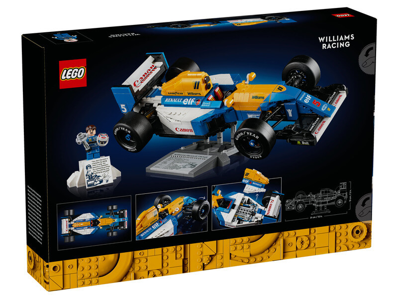 Ünnepeld a F1 fejlődésének történetét a felnőtteknek szóló LEGO® Icons Williams Racing FW14B & Nigel Mansell (10353) építőkészlettel, amely az otthonod vagy az irodád remek dekorációja lesz! Alkosd meg a legendás F1-es versenyautó replikáját, amelyet Nigel Mansell vezetett győzelemre az 1992-es Formula 1 világbajnokságon. A Nigel Mansell minifigurával ez a prémium kiállítható modell csodálatos dekoráció és szuper ünnepi vagy születésnapi ajándék lehet a F1 rajongóinak! A LEGO Icons Williams FW14B-nek működő kormányzása, széles, mintázat nélküli, „Goodyear” felirattal ellátott hátsó kerekei és részletesen kidolgozott motorja van. Tartozik hozzá egy bemutatóállvány is, amelyen a jármű adatai és versenystatisztikák láthatók. A Nigel Mansell minifigurához sisak és dobogószerű bemutatóállvány tartozik, amelyen a legendás pilóta fotója és egy tőle származó idézet van feltüntetve.