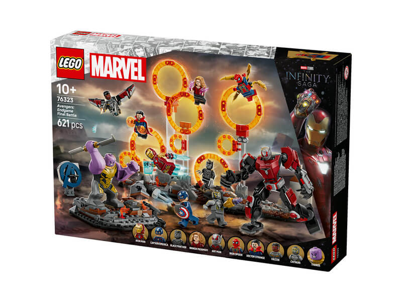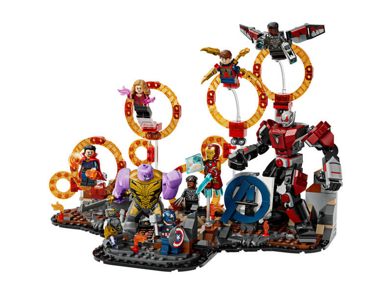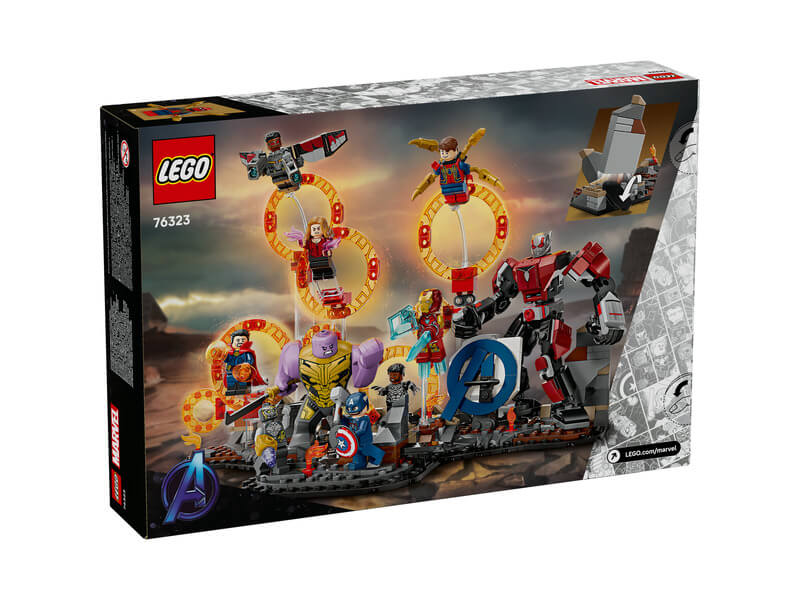 Hogy megelevenítse a Marvel Studios: Bossz úállók: Végjáték című film gigantikus leszámolásának jeleneteit, ez a megépíthető játékkészlet dimenzióportálokat és 9 minifigurát tartalmaz: Amerika Kapitány (pajzzsal), Vasember MK85 (karddal és pajzzsal), Chitauri (karra szerelt kilövővel), Hangya, A Skarlát Boszorkány (lángelemekkel), Doktor Strange, Vaspók (4 mozgatható „lábbal” a hátán), Fekete Párduc és Sólyom (2 korongvetővel). A hatalmas Thanos LEGO figura, a teljesen csuklós Hangya robot, a 2 sziklarobbantó funkció és a számtalan átépítési lehetőség pedig epikus magasságokba emeli a szuperhősakciókat. A szett 621 elemet tartalmaz.