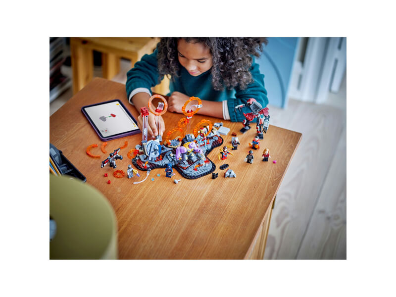 - Megépíthető szuperhősjáték – A hősök varázsportálokon át indulnak a Thanos elleni, hatalmas küzdelembe, hiszen a gyerekek újraalkotják az ikonikus filmjelenetet és eljátsszák saját szuperhőskalandjaikat