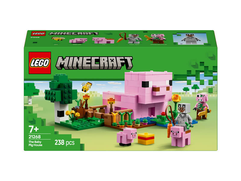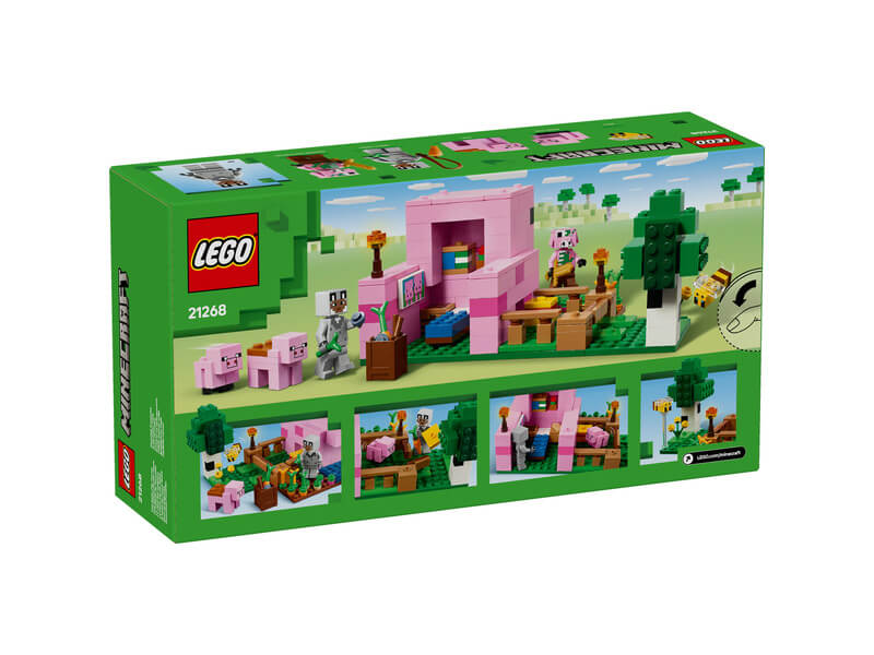 - LEGO® Minecraft® A kismalac háza – A gyerekek egy malac formájú házat építenek, amelyhez tartozik egy farm, ahol burgonyát és céklát nevelnek, valamint egy mező kapuval, amelyen átvezetik a kismalacot, és ez még nem minden!