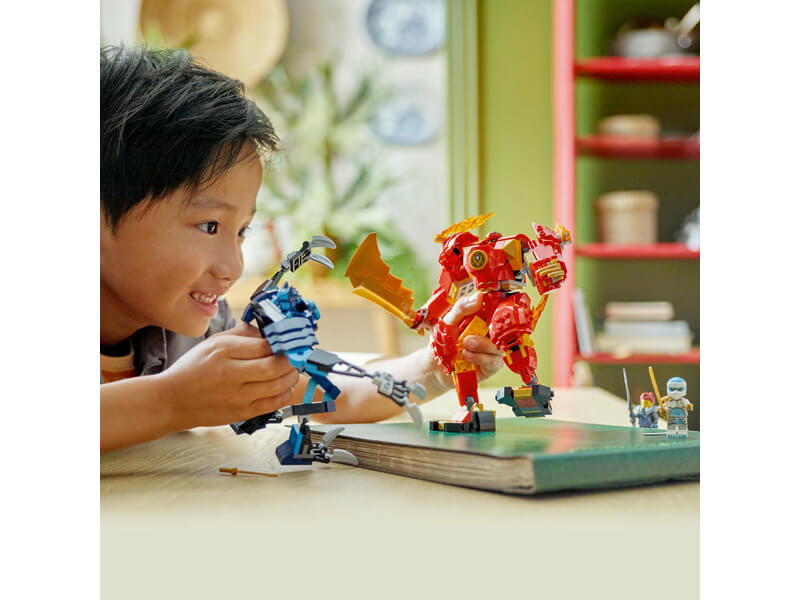 Egy még soha nem látott robot építőjáték, amely lehetővé teszi, hogy a gyerekek csatákat játsszanak el a saját, testre szabott LEGO® robotjukkal és a 4 NINJAGO® figurával, köztük Kai-jal.