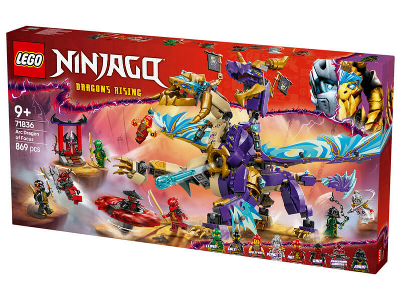 Fedezd fel a NINJAGO világát az Arc Dragon of Focus (71836) készlettel! Ez a lenyűgöző LEGO építőszett a nindzsák izgalmas kalandjait hozza el, és tökéletes választás a 9 éves vagy annál idősebb fiúk és lányok számára.