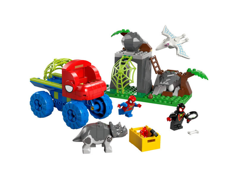 A készlet tartalmazza Pókember és Miles „Spin” Morales minifiguráit, valamint két dinót: Ghost-Spider (pterodactyl) és Rhino (triceratops).