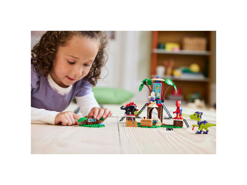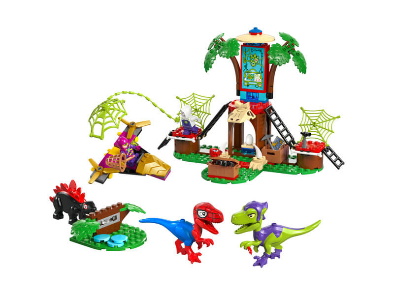 A szett tartalma: •Pókember figura: A szett tartalmazza Pókember karakterét, aki különféle pozíciókban mozgatható, így a gyerekek kreatívan alakíthatják a csatákat. •Zöld Goblin figura: Goblin figurája szintén mozgatható, és természetesen az ő jellegzetes eszközei, például a repülő szerkezet, is a szett részét képezik. •Raptor: Az izgalmas raptorcsata során a gyerekek egy élethű raptor dinoszauruszt is bevethetnek, amely az akció részeként fontos szerepet kap. •Lombház: A szettben található lombház főhadiszállás egy részletesen kidolgozott építmény, amelynek mozgatható elemei vannak. Az épület az akció közben változtatható, így egyedi jeleneteket alkothatunk. •Járművek: A Goblin számára készített repülő eszköz is szerepel a készletben, így a gyerekek a levegőben is megmérkőzhetnek Pókemberrel.