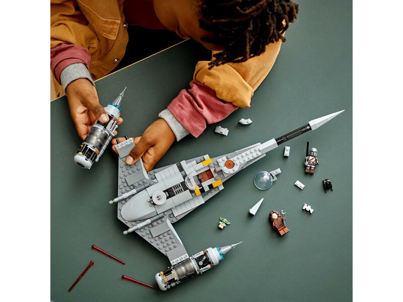 A Mandalóri N-1 vadászgépének (75325) LEGO® kockamodelljével a fiatal építők életre kelthetik a Star Wars: The Book of Boba Fett tatooine-i történeteit. Egy minifigurának kialakított pilótafülkét, Grogu utasterét, rakteret, rugós kilövőt és valósághű részleteket tartalmaz. Mókás ajándék a 9 éves vagy nagyobb gyerekeknek. Az építőjáték A Mandalóri és Peli Motto LEGO minifiguráit, Grogu (akit sok rajongó „Bébi Yoda” néven szokott becézni) és egy BD droid LEGO figurát is tartalmazza, amik kreatív játékra inspirálnak. Digitális építési eszközök GA készlethez egy lépésről lépésre vezető, illusztrált építési útmutató is tartozik. Emellett a LEGO Építési útmutatók alkalmazást is megnézheted, ahol intuitív nagyító és forgató képmegjelenítő eszközökkel bővítheted a kreatív élmény dimenzióit. Lenyűgöző építőjátékok A LEGO Csoport már 1999 óta alkot kockából épült, ikonikus Star Wars™ csillaghajókat, járműveket, helyszíneket és szereplőket.