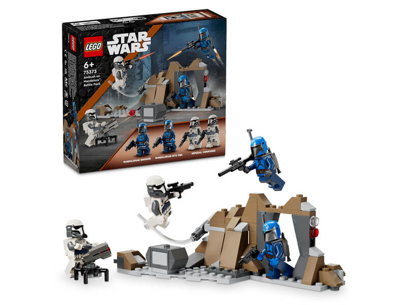 Játssz el izgalmas hátrakétás csatákat a Mandalore bolygón ezzel a LEGO® Star Wars: A Mandalóri készlettel, amely 4 LEGO minifigurát rejt! Engedd, hogy a gyerekek hatalmas hátrakétás csatákat játsszanak el a LEGO® Star Wars: A Mandalóri Csapda a Mandalore™ bolygón készlettel (75373)! Remek ajándék bármilyen alkalomra a kreatív fiúknak, lányoknak és 6 éves vagy annál nagyobb rajongóknak, akik ezzel a megépíthető kalandjátékszettel újraélhetik a Star Wars: A Mandalóri 3. évadának akcióit a 4 gyűjthető LEGO minifigurával: Mandalorian Nite Owl tag, Mandalóri harcos és 2 birodalmi rohamosztagos. Rengeteg LEGO kiegészítő is a szett része, köztük rombolók, romboló pisztolyok, hátrakéták és egy karral ellátott átlátszó elem, amellyel reptetni lehet a LEGO minifigurákat. Az inspiráló akciójátékot tovább fokozza a megépíthető sziklaformáció, a barlang és a korongvető ágyú. Nézd mega LEGO Builder appot, ahol útmutatókat, valamint nagyító és forgató képmegjelenítő eszközöket találsz, amelyek felturbózzák a gyerek építési élményét! A sziklaformáció/barlang csatlakoztatható a Paz Vizsla és Moff Gideon harci csomag (75386, külön kapható) Mandalóri bázisához, hogy még több játéklehetőség táruljon fel. Méretek – A megépíthető sziklaformáció ebben a 109 elemből álló szettben 7 cm magas, 17 cm széles és 8 cm mély.