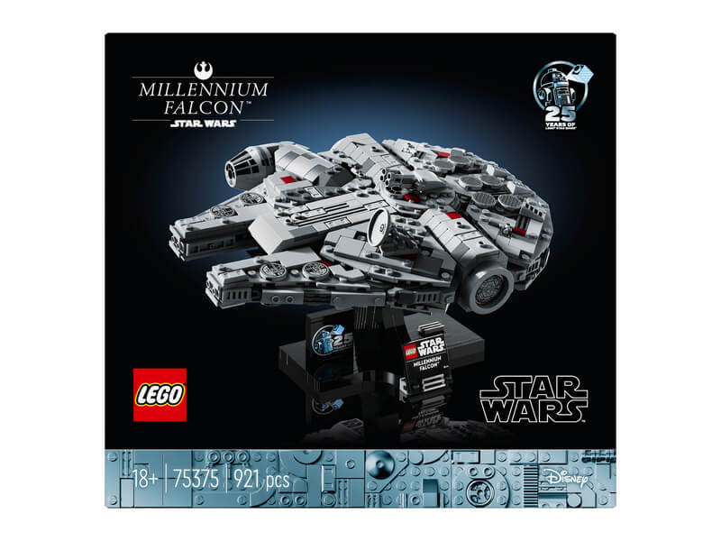 A klasszikus Star Wars™ történetek a nappalidban folytatódnak a gyűjthető LEGO® Star Wars Millennium Falcon, megépíthető és kiállítható űrhajómodellel (75375). Összpontosíts, mint a jedik, hogy újraalkothasd ennek az ikonikus csillaghajónak a valósághű részleteit, pont úgy, mint a Star Wars: Egy új remény című filmben. Állítsd ki az alkotásodat a megépíthető állványon, amelyet úgy terveztek, hogy egy dinamikus szögben (mintha repülne) mutassa be a Millennium Falcont! Egészítsd ki a névtáblával és a LEGO Star Wars 25. évfordulóját ünneplő kockával, hogy teljes legyen az alkotásod, amely biztosan előhívja majd a nosztalgikus emlékeket.