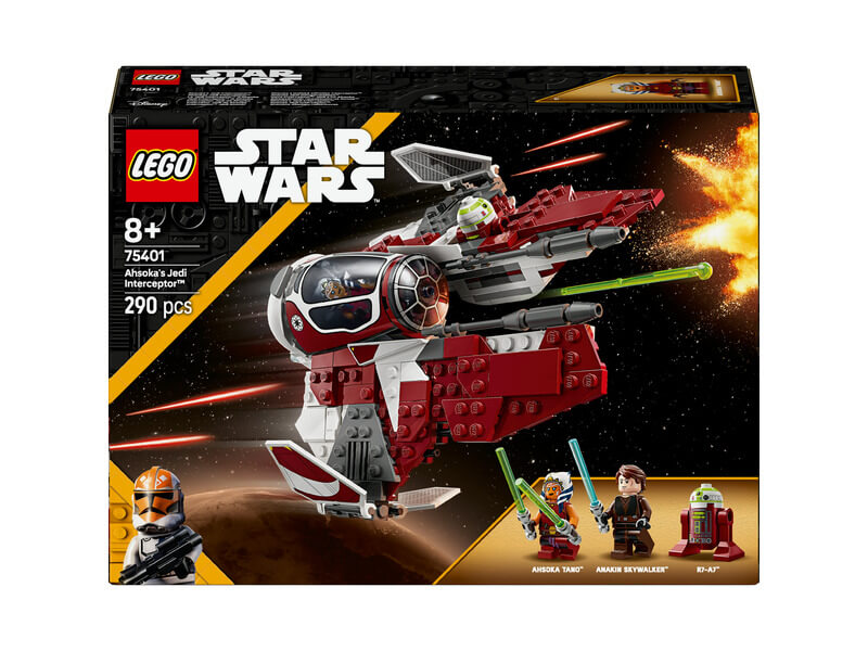 - Star Wars™ csillaghajó – A Jedi elfogóvadásznak felnyitható pilótafülkéje van, ahol Ahsoka Tano és R7-A7 kap helyet, szárnyaibeállíthatók, és tartalmaz 2 rugós kilövőt és egy tárolót Ahsoka 2 lézerkard™-ja számára