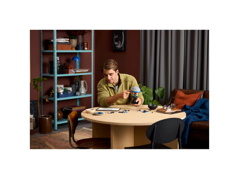 A megépíthető sisakhoz tartozik egy lépésenkénti útmutató, de letöltheted a LEGO Builder alkalmazást is, ahol építés közben 3D-ben nagyíthatod fel, forgathatod el és jelenítheted meg ezt a modellt. Ha összeraktad, akkor helyezd a sisakot a megépíthető, névtáblával ellátott állványra, és tedd teljessé ezt a szemet gyönyörködtető, Star Wars témájú kiállítási darabot!
