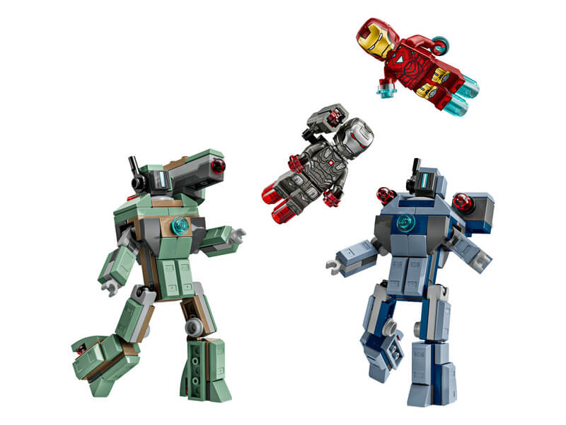 - LEGO® | Marvel minifigurák – A szett tartalmaz egy Vasember minifigurát, kezén és a lábán kék sugárágyúval és lézersugár-fegyverekkel, valamint egy Hadigép minifigurát, kezén és lábán piros sugárágyúval és egy korongvetővel
