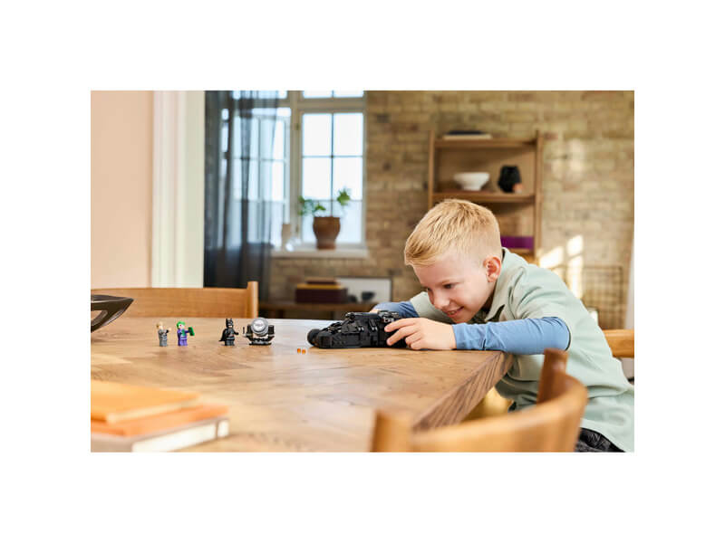 - Batmobile jármű: A szett tartalmazza a Batmobile-t, amely kinyitható, így felfedezheted a műszerfalat és a vezetőfülkét, ahol a Batman minifigura helyet foglalhat. A jármű kipufogójához egy levehető lángelem is tartozik, amely még izgalmasabbá teszi a játékot.