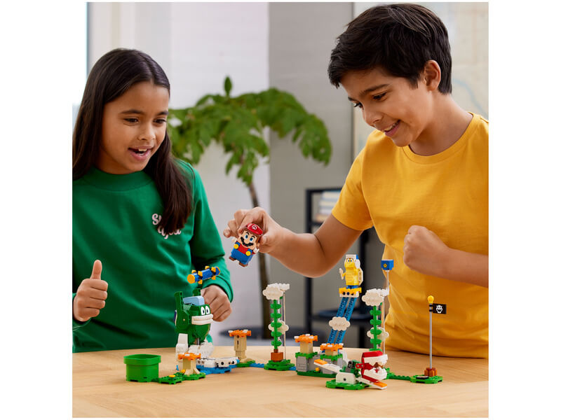 A készlet a Super Mario™ videójátékokból ismert kihívásokat és 3 népszerű ellenséget tartalmaz – egy Big Spike-ot, egy Bumeráng Brót és egy Piranha Plantet. A játékosok digitális érméket szerezhetnek, ha segítenek LEGO® Mario™, LEGO® Luigi™ vagy LEGO® Peach™ figuráinak (a csomag nem tartalmazza) megküzdeni a Big Spike-kal, ha a narancssárga Gombatrambulinra ugranak, hogy eljussanak Bumeráng Bróhoz, ha a Szuper Csillag kockát használják és még sok más akció során. (Megjegyzés: a 71360, 71387 vagy 71403 kezdőpálya szükséges a játékhoz.) Társalkalmazás Töltsd le a LEGO Super Mario alkalmazást, ahol építési útmutatókat, inspiráló ötleteket és sok más, mókás dolgot is találsz, amikkel felturbózhatod a gyerekek kreatív élményét. A legjobb ajándék Ez az önálló és társas mókához egyaránt klassz játékkészlet szuper ajándék a 7 éves vagy nagyobb, trendszetter gyerekeknek. A LEGO Super Mario kezdőpályák és kiegészítő szettek segítségével a rajongók bővíthetik és átépíthetik a pályákat.