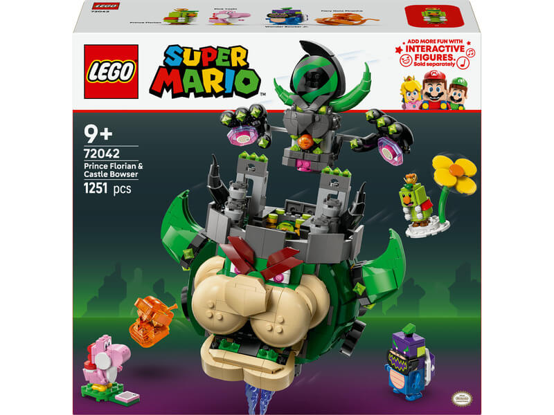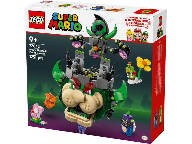 - Egy LEGO® Super Mario™ játék a vidám történetekhez és kompozíciókhoz – Éld át újra a Super Mario Bros™ Wonder csatáit a kockákból épült, „repülő”, tűzgolyót lövő Castle Bowser főellenséggel, és segíts kiszabadítani Prince Floriant!