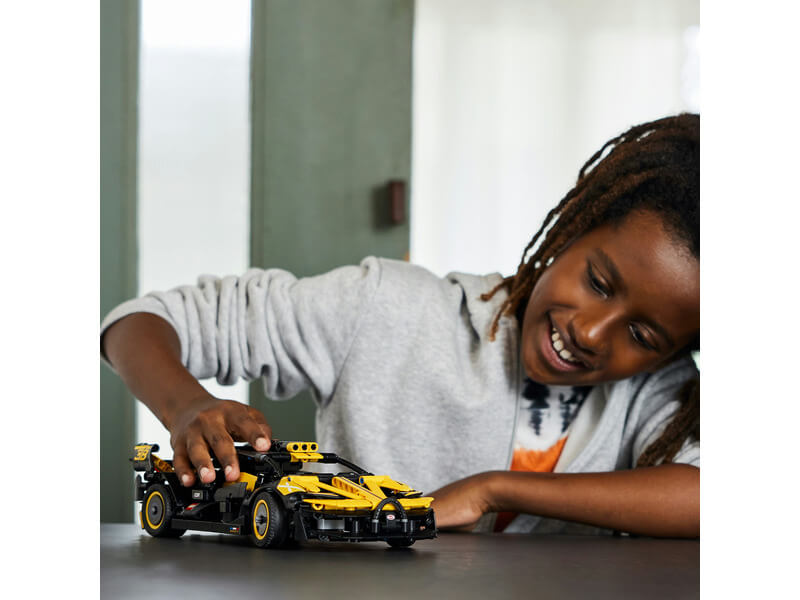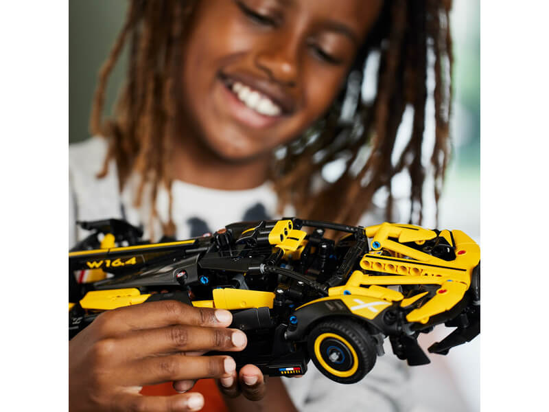 A fiatalok imádni fogják a kihívást jelentő projektet, miközben minden valósághű részletet megépítenek, többek között a működő W16 motort, kormányzást és az ollóajtókat. A sárga-fekete színösszeállításnak köszönhetően az autó bámulatos kinézete mindenki figyelmét magára vonzza. Az autó megépítése és felfedezése után a gyerekek büszkén kiállíthatják a gyűjthető modellt. Nagyszerű bevezetés a mérnöki tudományokba A LEGO Technic építőmodell-készletek valósághű mozgásokkal és szerkezetekkel vannak ellátva, amik megközelíthető és realisztikus módon vezetik be a fiatal LEGO építőket a műszaki tudományok világába. A LEGO Builder appal egy egyszerű és intuitív építési kaland vár rád és gyerekedre egyaránt! Az alkalmazásban felnagyíthatjátok és megforgathatjátok a modellek 3D-s változatát, készleteket menthettek el és nyomon követhetitek a haladásotokat.
