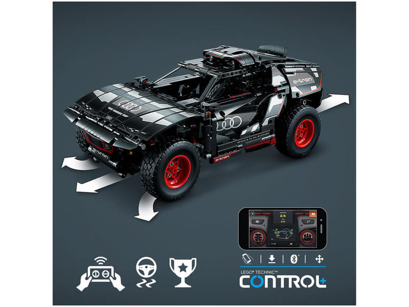 A rallyautókat kedvelő gyermekek letesztelhetik ügyességüket, miközben megépítik a LEGO® Technic Audi RS Q e-tron 42160 modellt. Az építés során közelebbről megismerhetik az igazi elektromos autót, amelyet az Audit tervezett a Dakar Rally zord, sivatagi terepére. A modell nagyon sok részlete valósághű, mint például az egyedi felfüggesztések mind a 4 keréken. Egyedi Technic kerékelemet is tartalmaz, amelyet kifejezetten ehhez a modellhez tervezhetek, hogy tükrözze az Audi teljes méretű keréktervezését. Próbáld ki élesben! A gyerekek kipróbálhatják a rallyautót a CONTROL+ alkalmazás segítségével, előre és hátra irányíthatják, valamint forgathatják a kormányt. Kiváló módja az építésnek A LEGO Technic szettek valósághű elemei befogadható módon ismertetik meg a fiatal LEGO építőket a mérnöki munkával, akiknek szórakoztató építési kalandban lehet részük. A LEGO Builder alkalmazás segítségével ráközelíthetnek a modellre, és el is forgathatják azt, miközben követhetik az építés menetét.
