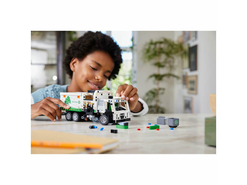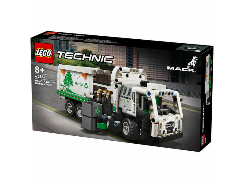 Inspiráld a gyermekeket, akik szeretik a járműveket, hogy fordítsanak figyelmet a zöld energiára és arra, hogy tiszta legyen a város, amiben a LEGO® Technic Mack® LR Electric kukásautó (42166) játék lesz a 8 éves vagy annál nagyobb fiúk és lányok segítségére. Ezt az újrahasznosító teherautót a csúcstechnológiás Mack elektromos kukásautó ihlette, és a mozgása, megjelenése is valósághű. A modell megépítése után a gyerekek élvezhetik a kreatív játékot, miközben felfedezik, mit tud a teherautó. A ajtók kinyithatók, és a gyerekek a fülke tetején lévő sebváltóelemmel a megfelelő pozícióba kormányozhatják a teherautót. Pont, mint az eredeti járműnek, a modellnek is oldalsó rakodója van, amellyel meg lehet fogni, fel lehet emelni és meg lehet dönteni a kukákat. A gyerekek eljátszhatják, hogy elszállítják a szemetet, és kiürítik azt. A készlet szemeteskukákat és szemételemeket is tartalmaz, hogy támogassa a fantáziadús játékot. A LEGO Technic építőkészletek valósághű funkciókkal ismertetik meg a fiatal LEGO építőkkel a mérnöki munkát. Adj a gyermekek kezébe egy izgalmas építési kalandot a LEGO Builder alkalmazással! Itt ráközelíthetnek a modellre, és 3D-ben el is forgathatják azt, miközben követhetik az építés menetét.