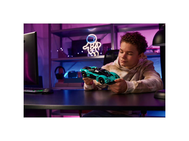 Adj a gyerekek kezébe egy lélegzetelállító projektet a 9 éves vagy nagyobb fiúknak és lányoknak egyaránt tökéletes LEGO® Technic Aston Martin Valkyrie (42208) autómodellszettel! Az igazi Aston Martin ihlette modellváltozat lenyűgöző, áramvonalas kialakítása és csodálatos színösszeállítása biztosan örömet okoz majd a sportautók rajongóinak. Fedezd fel a rengeteg izgalmas jellemzőt, például az autó tetején lévő gombbal irányítható kormányzást vagy a gullwing (sirályszárny) stílusban nyíló ajtókat. Nyisd ki a motorháztetőt, és fedezd fel a V12-es motort! Figyeld meg, hogyan mozognak a dugattyúk a vezetőülés felőli kerék forgása közben – és ne feledkezz meg a differenciálműről sem! A (külön kapható) LEGO Technic készletek valósághű, mozgó elemei bevezetik a fiatal LEGO építőket a mérnöki munka világába. Ez a készlet szuper ajándék lesz azoknak a gyerekeknek, akik imádják a járműves játékokat. Küldd a gyerekeket egy intuitív építési kalandra a LEGO Builder alkalmazással, amelyben 3D-ben ráközelíthetnek a modellekre, és el is forgathatják azokat, miközben nyomon követhetik a építési előrehaladását. A szett 707 elemből áll.