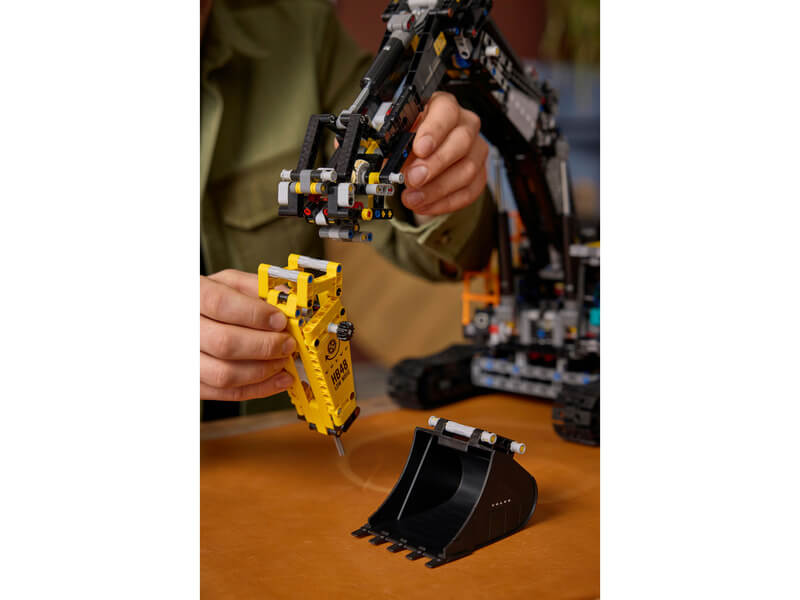 - LEGO® kalapács- és ásóeszközök – Csatlakoztasd a kalapácsot vagy az ásót, majd mozgasd a váltóval az exkavátor gémjét és karját, hogy egy igazi munkagép mozdulatait utánozhasd
