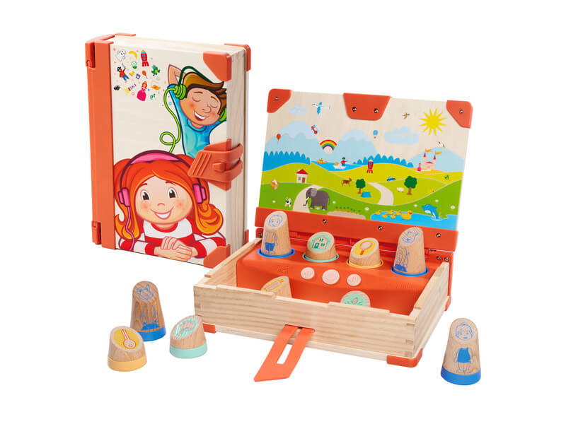 Ez a fából készült mesekönyv más, mint a többi, ugyanis a gyerekek aktívan részt vesznek a mesék kitalálásában. A mesék folyamatosan változnak attól függően, hogy milyen figurákat helyeznek bele a történetbe: egyszerűen beteszik a kedvenc szereplőiket, tárgyaikat a megadott helyekre, és máris kapnak egy történetet.