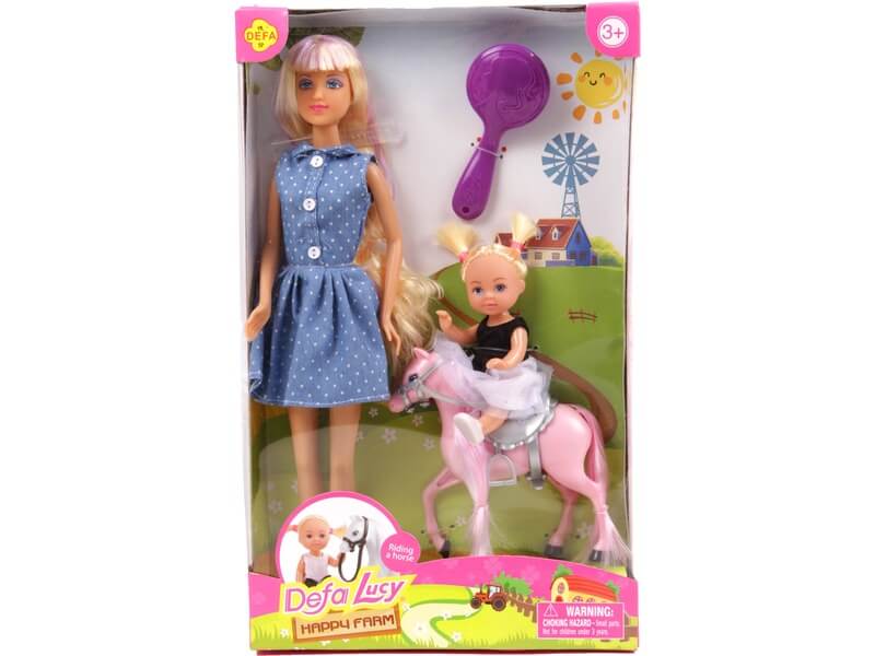 Ültesd fel Lucy baba kislányát a pónilóra! A Lucy baba farm készlet 2 babával készletben a felnőtt Lucy babát és kislányát találod, lenge tavaszi ruhában. A kislányt fel tudod ültetni a ló hátára, a babák karjai és lábai mozgathatók, a készlet együtt használható más Defa Lucy játékokkal is. Lucy baba mérete: 29 cm, a kislány baba mérete: 10 cm.