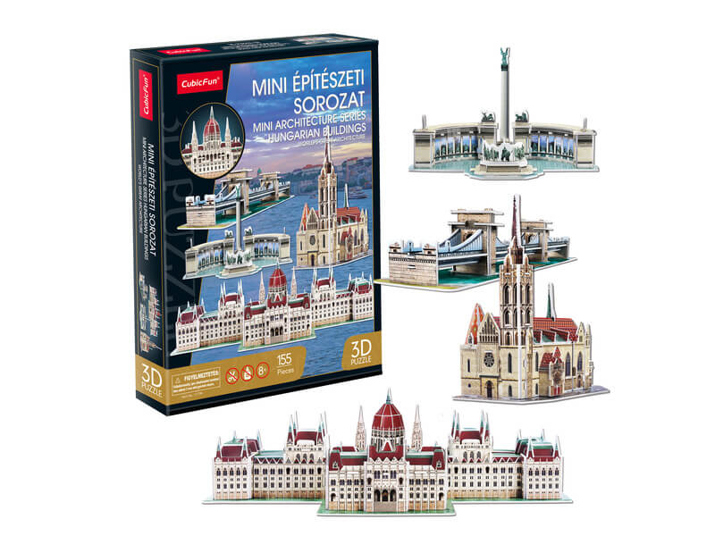 3Dimenziós puzzle mini magyar épületek (Parlament,Mátyás-templom, Lánchíd, Hősök tere) Könnyen, segédeszköz (olló,ragasztó) nélkül összeállítható