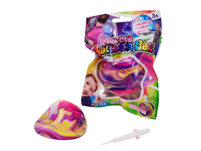 Varázsolj és készíts te is óriási márványos labdát! Ez a varázslatos márvány mintájú labda akár 40 centiméteresre is nőhet, ha ügyes vagy. Ez a felfújható labda tökéletes időtöltés az egész család számára. A labdajátékok fejlesztik a szem-kéz koordinációt és javítják a finommotorikus mozdulatokat. Ez a márványos felfújható labda kültéren és beltéren egyaránt használható. A csomag tartalmazza a felfújáshoz szükséges eszközt. Helyezze a pumpát az önzáró szelepbe, és fújja addig amíg a labda el nem éri a kívánt méretet.
