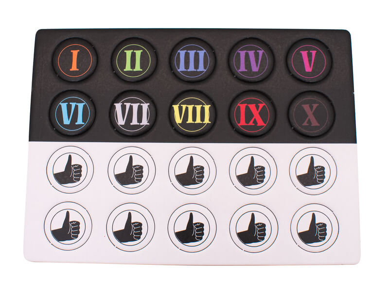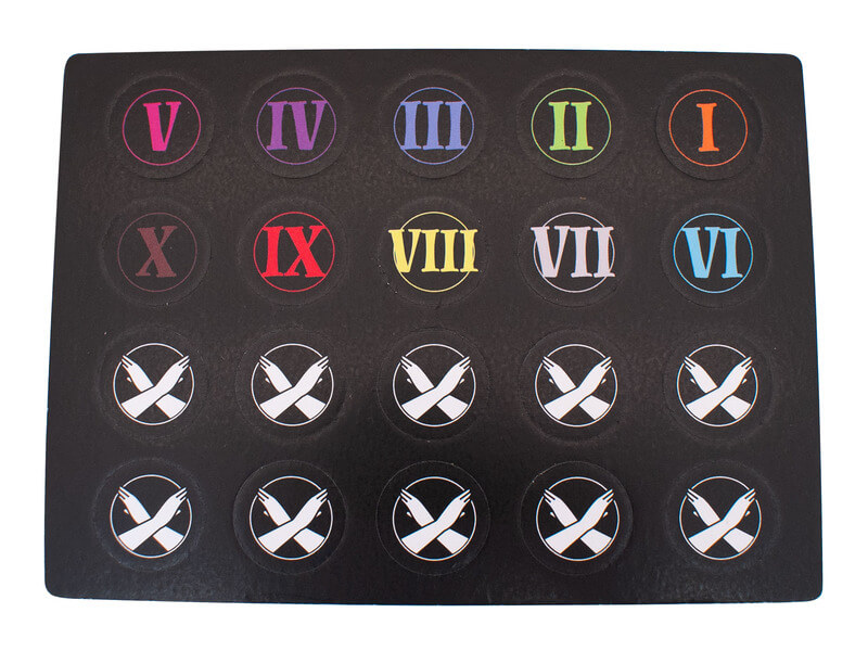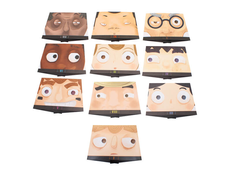 Doboz tartalma: bűnökre épülő kártyakészlet • összefoglaló tábla • 10 sorszámozott paraván • 10 „szem” kártya • 10 szavazókorong