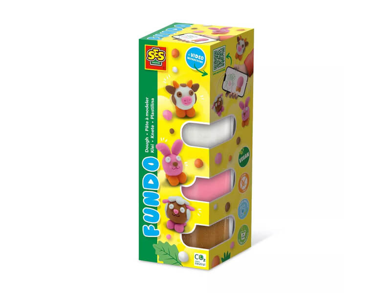 A SES FUNDO Móka gyurma – Farmállatok készlet tökéletes választás a kis kreatív kezek számára! Ezzel a vegán és biztonságos összetevőkből készült gyurmával a gyerekek könnyedén formázhatnak aranyos farmállatokat, mint például tehenet, nyuszit vagy malacot.