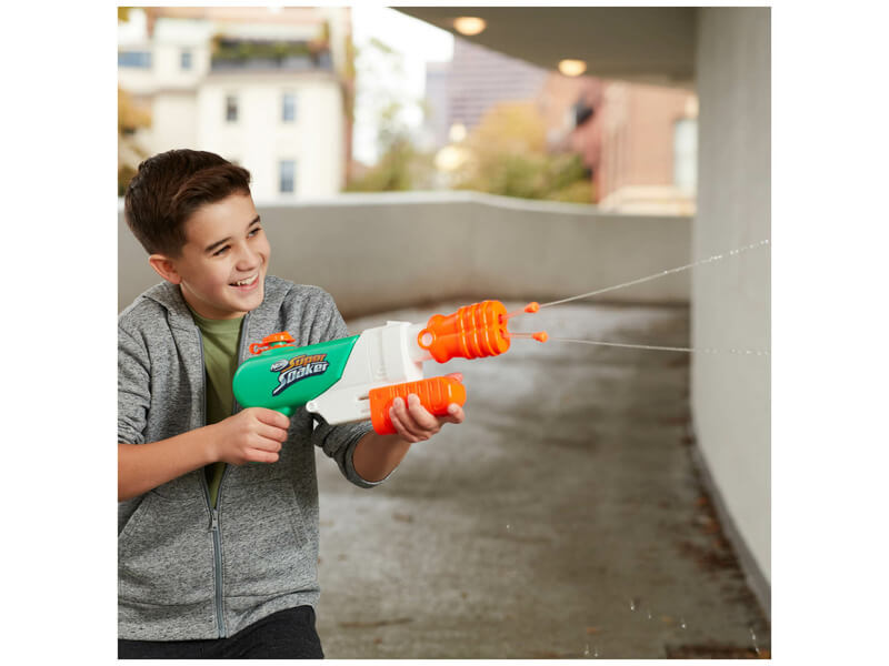 A Nerf Super Soaker Hydro Frenzy vízsugár kilövőt két csővel és egy állítható fúvókával tervezték, amely megváltoztatja a víz kifújásának módját a csövekből, a vad 3 az 1-ben fröcskölés érdekében! Lőjj ki két párhuzamos sugarat a szórófejből! Húzd vissza a fúvókát félig, hogy két széles sugár permetezzen, vagy húzd vissza a fúvókát teljesen a vadvízi hatáshoz, miközben a csövek minden irányba vadul csavarodnak, és vízsugrakat szórnak mindenhova. A hatótávolságon belül bárki elázhat, ahogy a csövek forognak! Irány a szabadba, hogy mindenki vizes legyen a játék végére. A Nerf Super Soaker fegyverek tökéletes kültéri játékok órákig tartó szórakozáshoz barátokkal vagy családdal.