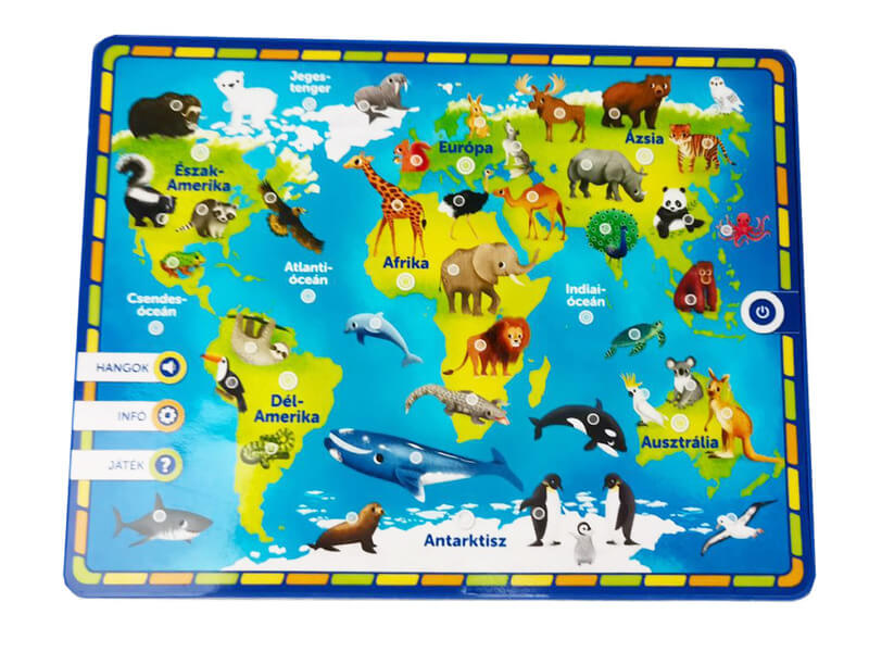 Ismerkedj meg Földünk csodálatos állatvilágával, az oktató tablet segítségével. Ez az interaktív atlasz bevezet téged a különböző földrészeken található őshonos állatok világába.