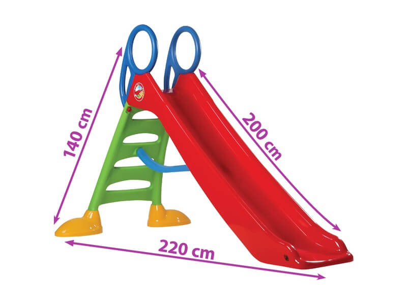 Csússzatok a nagy műanyag csúszdán! Az óriás kerti csúszda könnyen összeállítható, széles és hosszú csúszófelülettel. A csúszda alkatrészeit össze kell pattintani, és akár egész szezonban kint lehet hagyni a kertben. A csúszda UV-álló, és bírja a különböző időjárások hatását is. Az Óriás kerti csúszda színe eltérhet a képen láthatótól. Összerakott méretek: 220 x 140 x 200 cm. A játékok külön kaphatóak.