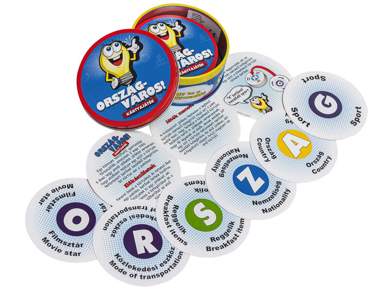 Találj minél hamarabb szavakat, a megfelelő témakörben! Az Ország-város kártyajáték egy gyorsasági társasjáték, ahol minél hamarabb kell az adott témakörhöz megfelelő kezdőbetűs szót találni. Csapjatok fel a két pakliból egy-egy kártyalapot, az egyiken a témakört láthatjátok adott színnel, a másikon három betűt, három színben. Ha piros témakört húztok, akkor a piros betűhöz kell szót találni, aki a leggyorsabb lesz, elteheti a két lapot. Aki a legtöbb kártyalapot összegyűjti, megnyeri a Ország-város kártyajátékot.