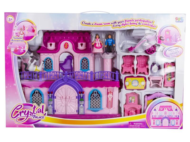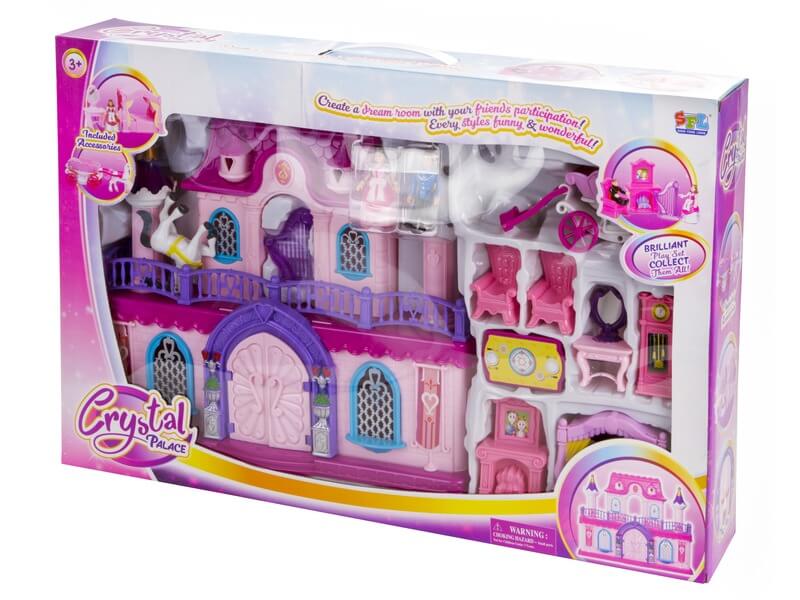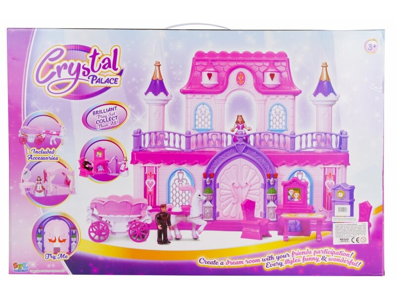 Játszd el egy királyi pár mindennapjait egy kastély babaházban! A Palota játékkészlet hintóval egy hatalmas méretű műanyag babaház, nyitható ajtókkal, sok berendezéssel és egy királyi hintóval. A trónterembe fel tudod állítani a székeket, az asztalt, és még a kandallót, is, a kiegészítők között egy nagy órát és egy baldachinos ágyat is megtalálsz! A hercegnő és herceg figuráját be tudod ültetni a hintóba, a kastély ajtajai nyithatók, ráadásul bármilyen más babaházzal is együtt tudod használni a készletet. A Palota játékkészlet hintóval méretei: 43 x 9 x 38 cm, figurák mérete: 8 cm.