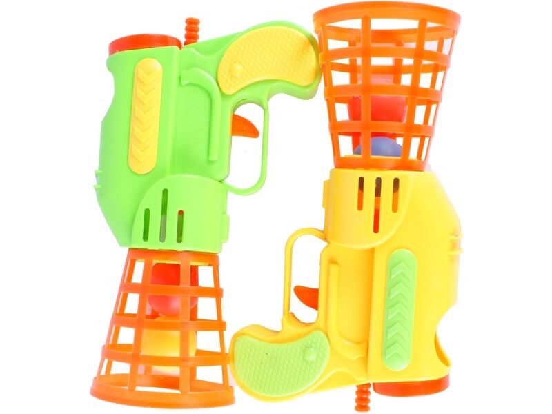 Lőjétek egymásnak a kis golyókat és kapjátok el! A Páros labdakilövő készlet két műanyag, kosárral felszerelt játékpisztolyból áll, amikkel egymás ügyességét próbálhatjátok ki! Álljatok egymással szemben, és kezdjétek el egymásnak lövöldözni a golyókat. Aki többször tudja elkapni a labdákat, megnyeri a játékot. A Páros labdakilövő készlet fejleszti a koncentrációt és a célzó képességet is.